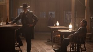 I do have some issues with film, the primary one being that the characters underestimate Hearst too much. Have they forgotten the events of the third season? That Hearst will do whatever it takes to get what he wants, such as having Alma shot at and Ellsworth killed. Utter refusing Hearst’s offer on his land is a clear death sentence and yet everyone is shocked when the inevitable happens and Charlie ends up with a bullet in his head. Hearst’s “predisposition for foul play” is only briefly mentioned once in the film’s first act and seemingly ignored just so the plot of the film can go ahead. The film also has some brief flashbacks to the events of the show, some of which I think are necessary and others I don’t. Trixie shooting Hearst and the aftermath of that event? Sure, that’s important to the plot and a recap is fairly vital, especially because it’s included to show that Hearst has remembered the event. But I really don’t like the flashback to when Wild Bill was shot and killed. I think a brief quiet moment during the hubbub of the No. 10 saloon of Jane simply gazing at an empty chair where Bill once sat would have played better.