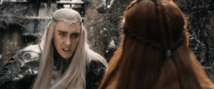 While Bilbo mourns Thorin, Tauriel grieves for Kili. The Dwarf/Elf romance subplot is a complete failure and clearly an afterthought by the writers. There’s no chemistry there and they spend so little time together that their relationship is totally unbelievable. Tauriel’s conversation about love contains some atrocious dialogue and yet somehow manages to warm Thranduil’s cold heart. After the battle, the Elven King sends Legolas on a quest to find Strider, but why? Thranduil is an isolationist; he cares not for the outside world. So why does he know about Aragorn or care about him being the heir to the throne of Gondor? It’s purely fan service and would make more sense coming from Gandalf. And what happens to Thranduil after the battle? Does he give up trying to get the white gems he sought? You know, the ones he rode into war for. I don’t see the newly crowned King Dain giving them away.