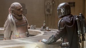 Said cantina is where we first meet Cobb Vanth (Vanth Refrigeration). Or at least first meet onscreen. Vanth is actually a minor character in the Aftermath trilogy of novels, and while his origin is slightly different in the show (although I couldn’t tell you how exactly because it’s been years since I’ve read those books), the character is mostly consistent with his written counterpart. The Mandalorian looks set to bring in multiple characters from across canon this season and while that rapid expansion could be an issue (looking at you Ahsoka), Cobb Vanth is a great addition to the show. His appearance continues the theme of what it means to wear the Beskar armour and what truly makes a Mandalorian. Vanth took the armour and used its image (and rockets) to protect his people. To me, he had earned the armour at the end by moving past his prejudices and so I was surprised Din didn’t let him keep the armour. Although I imagine he will return it to Vanth in a future episode.