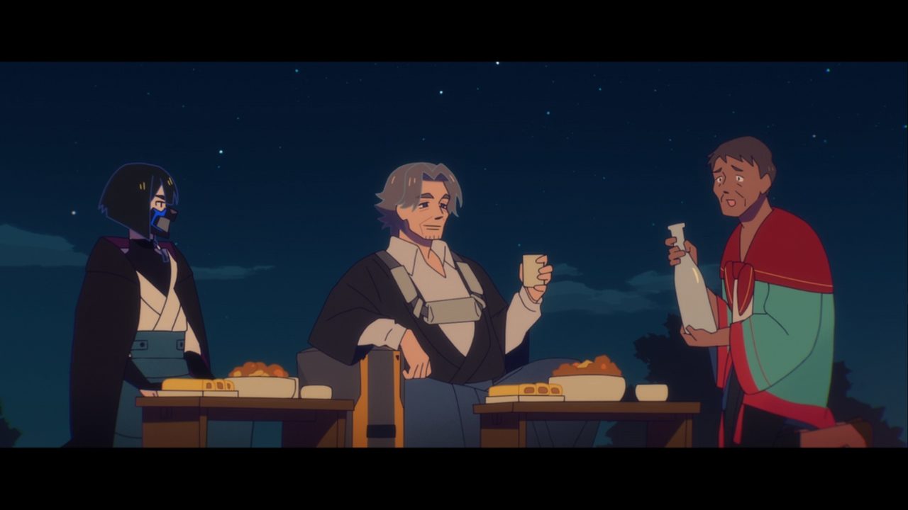 This filters into the action too. There is not much of it in this episode but it is every bit as impactful. The action in The Twins might be “dialled up to eleven” but the action in The Village Bride only has one setting; “When I draw my blade, my foe will fall.” Much like during the Obi-wan vs Darth Maul fight in Star Wars: Rebels, a few seconds can be all that is needed to deliver for the audience. What’s truly important is the build-up and the pay-off. The action is there to serve as the means to transition between the two in the narrative. Kinema Citrus deliver an absolutely compelling story in such a short time.