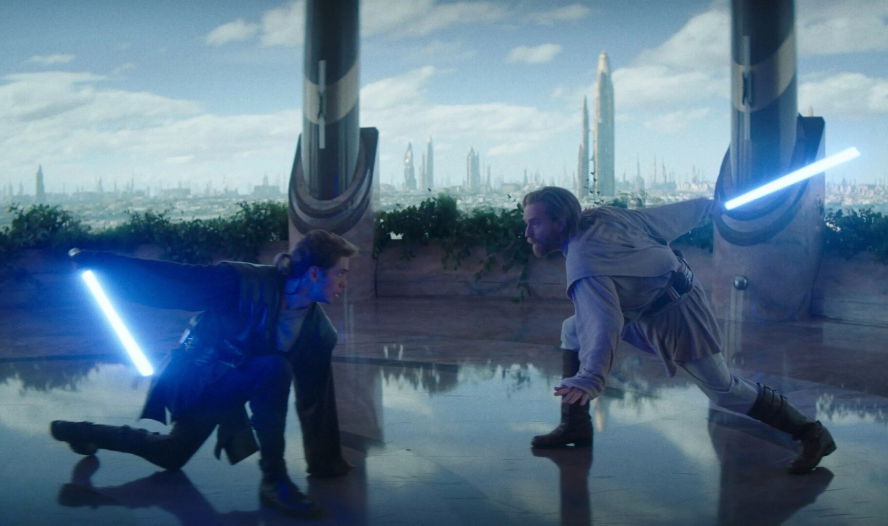But, of course, the actual fighting is great. Vader in the suit has to fight differently than pre-burn Anakin so getting an opportunity to revisit how the two previously fought, fast and balletic, is brilliant. Attack of the Clones was my favourite Star Wars movie as a kid so the episode unexpectedly harkening back to that more than Revenge of the Sith is a wonderful surprise. The mullet returns! The two actors look older than they should, Hayden in particular does not look 19, even with some subtle de-aging, but I don’t care. I’d rather they look as they do, able to emote, than go full Mandalorian season 2 with CGI Luke. I also still haven’t gotten over the excitement of seeing Coruscant in live action again. The training room itself is one of the few locations I think really works in the show. The backdrop is beautiful and it has a grand opulence that contrasts well with the dingy cave the rest of the episode is set in. The duel reflected in the shiny floor is a nice touch.