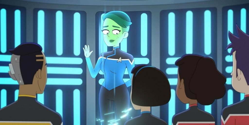But whereas I ate up all last season’s DS9 references, my favourite Star Trek show, I really don’t care for Voyager. I’ve watched it all, most episodes a couple of times, but it does nothing for me bar a few select episodes. Mariner may have been excited about going aboard the ship but I wasn’t. Yet there’s one reference in the episode which does work for me, and I feel it’s the kind that works for both fans of Voyager and those more critical of it. The Cerritos crew is aghast when they learn how Janeway dealt with Tuvix, essentially murdering the poor crewman when he refuses to sacrifice himself. It’s a controversial episode and one which highlights how inconsistent and occasionally brutal Janeway was as a captain. Seeing characters within the franchise learn about this is a great moment and it’s hilarious that even Shaxs is shocked by the revelation.