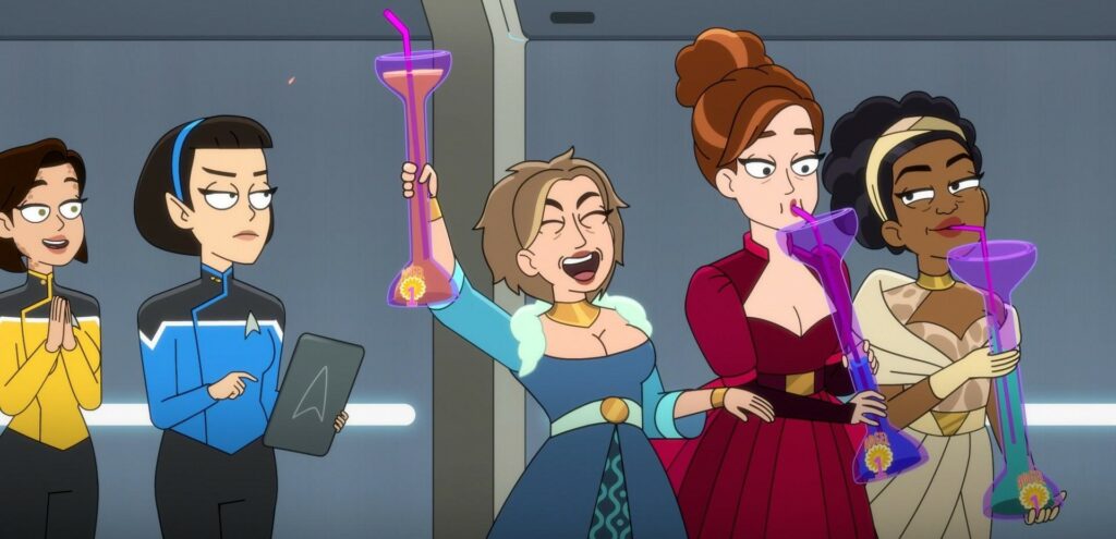 Since the beginning, Lower Decks has pushed the boundaries of Star Trek. While a considerable fan of the show, some of its sensibilities still don’t totally work for me when I try to reconcile the show’s events taking place in continuity with the rest of the franchise. I don’t want the violence to be too bloody, and the bleeped strong language is hit or miss (although that’s more execution than concept, Arrested Development remains the king of this gag). But one more ‘adult’ element that does work for me is the sex. It fits Star Trek. Gene Roddenberry’s future is one of sexual liberation and the older shows were held back in presenting and exploring this idea. Lower Decks can go further in this regard and does. The Cerritos is a horny ship. It is across the series and when three busty Betazoids are aboard, being ferried from Angel I to Risa, and T’Lyn’s Bendii syndrome causes heightened emotions, it leads to some particularly free spirted misadventures. Being more explicit about sex and the lax reactions to it leads to some great comedy throughout the series and is very fitting for this franchise, which has only previously flirted with its liberated future and can now penetrate deeper.