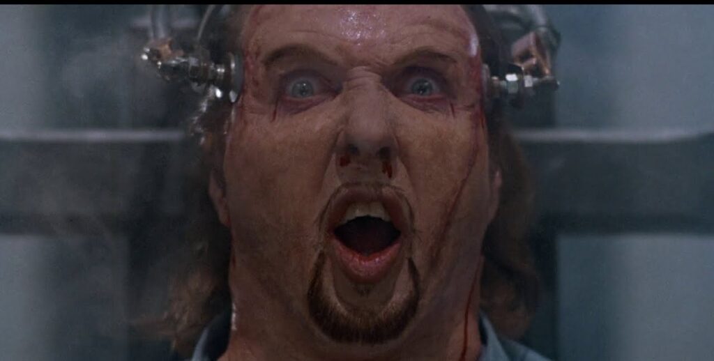 Jenke had an electric chair in his apartment and would sit on it for increasing increments every day to build up an immunity. Come on! That’s such an insanely fun idea. How can people dismiss this movie so easily? The execution scene is nuts and I love it. Jenke takes minutes to die, the electricity warping his skin as he begins to bulge and throb, ultimately ending in him bursting into flames as he escapes the restraints and walks towards McCarthy. It’s brilliant and the effects are great. Of course, Jenke lives on in some other form, described as “pure evil as electromagnetic energy. An electricity of evil.” He’s like a denizen of the Black Lodge in Twin Peaks. How can this film get any better? What more do people want?
