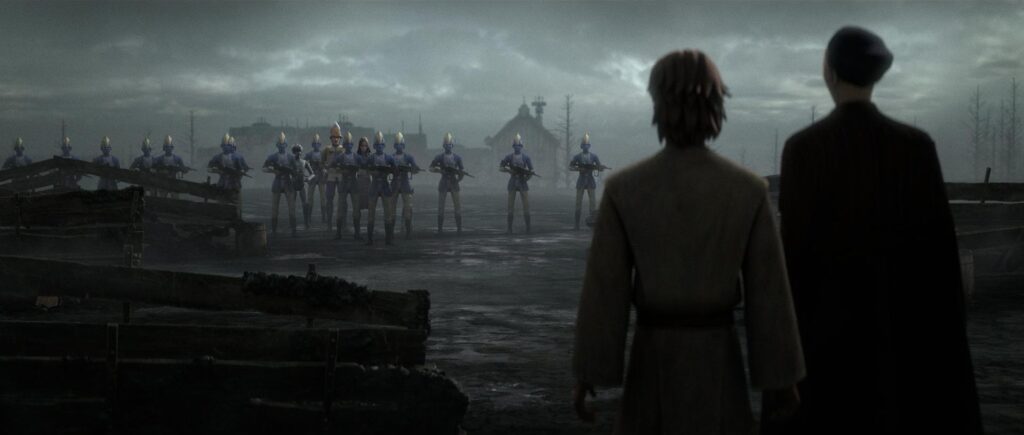We really needed this depth to Dooku. The Clone Wars showed the end of his journey, where he is fully corrupted, an evil Sith. Justice, finally, shows us the Jedi, the man, as he was discussed by the Jedi early in Attack of the Clones but not seen. Like Anakin, he was a good Jedi. It’s not a simple turn towards villainy. Seeing him with his padawan Qui-Gon does so much. It adds to the legacy of lessons trickling down from master to apprentice throughout the saga. We see how Dooku came to inform Qui-Gon’s worldview but also when he would stand up to his master. I also love the design of the planet. It feels unique in the franchise. Very realistic, this muddy, grey, downbeat farming world, but it’s just Star Wars enough to work.