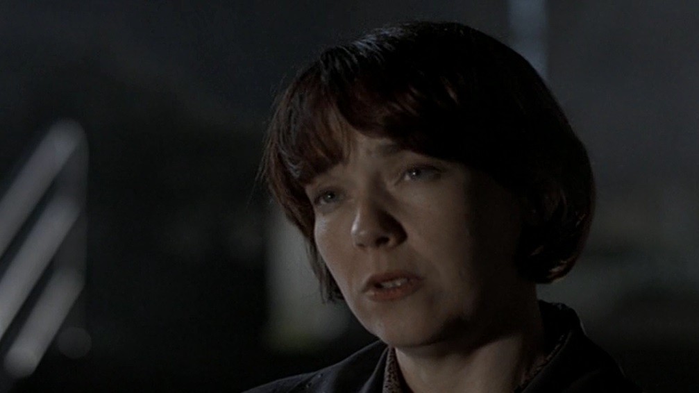 And personifying much of the episode’s issues is the treatment of Maureen Murphy, played by guest star Harriet Harris. Murphy is a member of the Millennium Group, paired with Frank to hunt the killer. It seemingly begins well, with the local sheriff dismissing the need for a woman’s opinion on male sexuality and Frank putting him in his place by saying her opinion needs to be valued. The episode then never values her opinion. Murphy is barely in the episode, with usual cohort Peter Watts stepping in to deliver the exposition that should be her’s, and then there’s another Millennium member who tags along as well as the sheriff. It’s too big a group for what needed to be a two-hander. Murphy is left with only one meaningful scene, interviewing the killer’s wife. It’s a massive waste of Harriet Harris who is so good in The X-Files episode Eve where she portrays multiple distinct characters. Here, she doesn’t even get one.