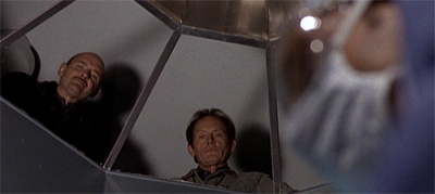 There might be no more powerful image in the first season of Millennium than the yellow house, the final bastion of light and life, in the pouring rain. The storm has finally come for the Black house. The worlds of the show, despite Frank trying to keep them separate, have collided. The demonic killer comes for Frank’s wife and daughter all while Frank is impotent, across the country sitting by the phone, waiting to learn if they are dead or alive. It’s a great sequence, seeing Catherine in peril, her home invaded by the dark. I’m curious to see how many times the show will play this card. It can’t happen too many times and maintain an impact but it’s very effective here, scary in its inevitability. It’s a brilliantly creepy episode.