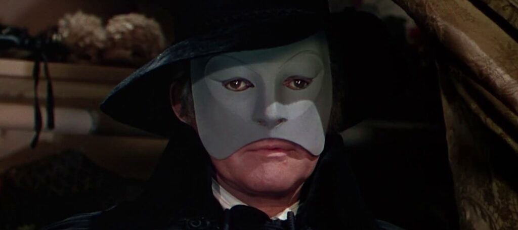 The film does begin to pick up at the end but it’s far too late. We get the chandelier scene, the Phantom finally doing something villainous, and he brings Christine down into his lair. But there’s no interesting Faustian bargain, it’s just a straight kidnapping. There’s no angry mob, just the two love interests. And the lair is dull compared to Chaney’s. All the horror aspects are minimised and it all wraps up in five minutes, the mask reveal happening right at the very end rather than an hour in like the original. All the good stuff from that version’s third act, like the Edgar Allan Poe inspired Red Death scene, is removed. The brilliant third act of the original had to be cut from this version to make room for the new lame opening act with Claudin.